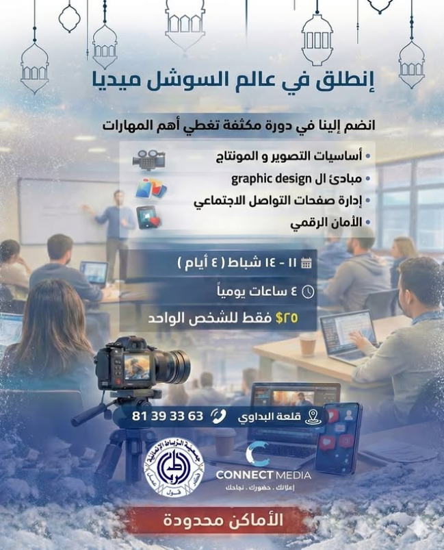 Read Moreبدك تفوت بعالم السوشال ميديا و تكون جاهز لسوق العمل الرقمي📲🎥نحن معك خطوة بخطوة 🫱🏻🫲🏼٤ ايام ب ٤ ساعات رح يغيروا تفكيرك !للتسجيل و الاستفسار : 393363-81